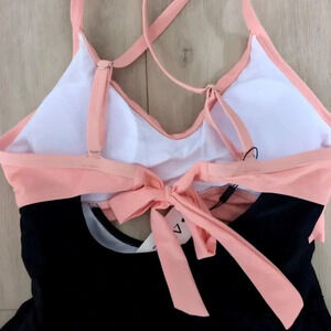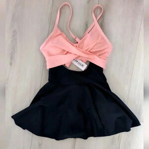 AIMAGE | Women's Peach/Black Push-up Twist Front One Piece Skirt Swimsuit