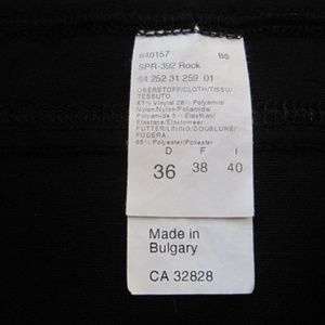 AIRFIELD Mini Skirt. Color: Black/Grey Denim. SIZE: 38 FR. (waist measures 15") This chic yet sporty skirt is made from a combo of black jersey and grey denim panels. Elasticized waist with functional front zipper and decorative cinch cord.Side flap pockets, unlined.Airfield rhinestone brand logo on back waist and well as etched on front zipper pull. Fabric Content: 65% Polyester, 35% Cotton. Shirt is in very good pre-owned condition. Minor overall wear. No stains or rips.