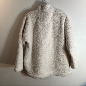 AIRIE Sz L Cozy Cream Sherpa Pullover With Snap Closure Funnel Neck Long Sleeves