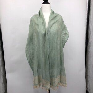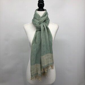 Beautiful lightweight rectangle scarf that is solid green except at the ends which are cream and tasseled.