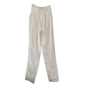 AJE WHITE LINEN BLEND MARTINO TAPERED LEG FRAY PANTS - 4