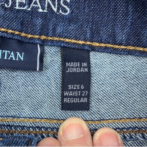 EUC, these Anne Kleins are old school, with 99% cotton and 1% elastine - which enables there to be a noticeable "give" to the width of the material. These jeans are for curvy girls, as the hip measurement is much more than the waist. Great material and made to Anne Klein standards, these jeans have nice details, like branding on the popper and the inside silky pockets. These just might be your new go-to jeans!