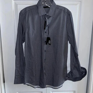 AKA men shirt , NWT ,slim fit,blur,white,tan print,cotton 100, AKAC1330,career