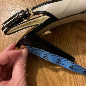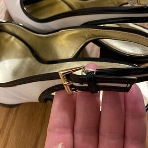 AK Anne Klein Akemani Ivory Black Beaded Slingback Peep Toe Heels (Size 9)