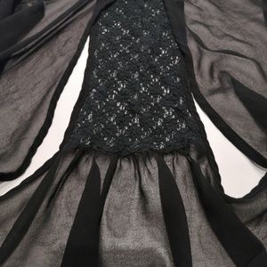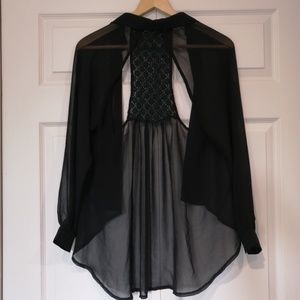 Ready for a night out! Sheer black button up top, with open back/ lace panel detail.
