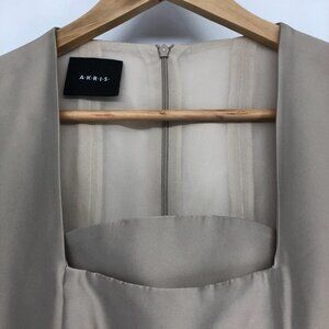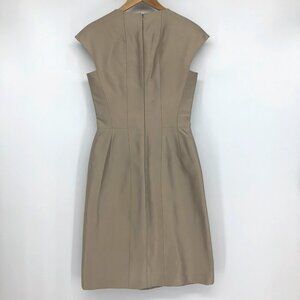 AKRIS Tan Beige Square Neck Silk structured professional flared dress size 4
