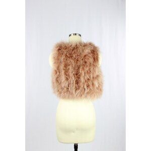 AKUALANI Dusty Pink Ostrich Feather Cropped Vest Shrug, Size S/M