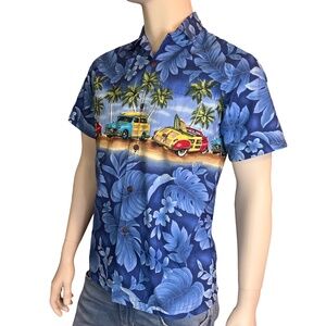 AL HA Republic Hawaiian Shirt Tiki Vintage 90s Chemise Woody Wagons Surf Boards