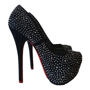 FADHION HIGH HEEL PLATFORM PUMPS WITH SILVER RHINESTONES