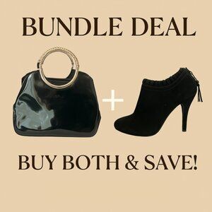💓Pair the A.L. Beni black patent handbag with the Aldo black suede booties for the perfect night-out combo.