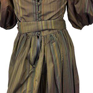 ALBERT NIPON VTG 70's Balloon Sleeves Chocolat Brown Green Taffeta Tent Dress S