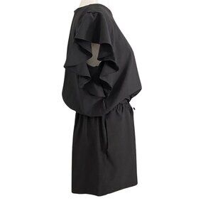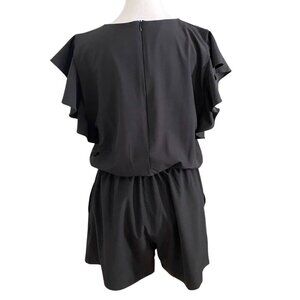 ALBION BLACK RUFFLE NYLON ELASTIC WAIST ROMPER - M