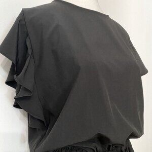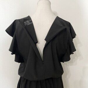 ALBION BLACK RUFFLE NYLON ELASTIC WAIST ROMPER - M
