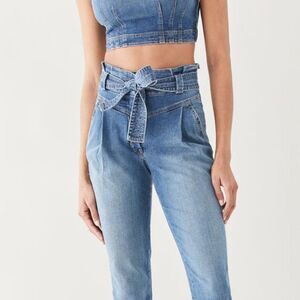 Spice up your denim collection with these A.L.C. Davis pants, which have a pleated paperbag waist with a charming tie self-belt. Pair with the labels matching crop top for a cute and casual look from head to toe. Designed for a paperbag waist with a slim fit - cropped length.