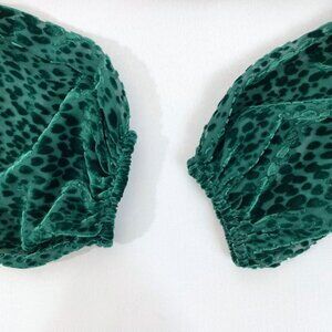 ALC KAREN FOREST GREEN EMERALD VELVET BURNOUT TUNIC TOP, This velvet burnout blouse features an animalistic spotted pattern and is finished with a soft peplum. Roundneck - Raglan sleeves with elasticized cuffs - Back keyhole button closure - Elasticized waistband for a tunic / peplum style. Fall and winter chic formal yet stretch and comfy favorite top- holiday's season first choice with a black faux leather fitted pants for a party look.