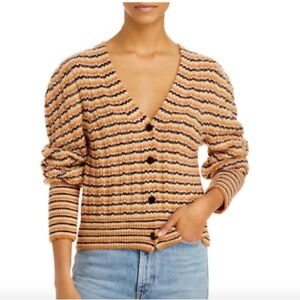 A.L.C. | Rebekah Striped Ribbed Wool-Blend Cardigan Sweater Size Medium