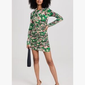 A.L.C.'s Kiki dress is crafted of clinging stretch jersey and features a ruched skirt. This long-sleeve style is complete with a vibrant floral print.