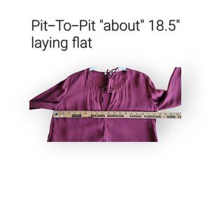 This is a burgundy blouse from the Nordstrom brand A.L.C. in a size 6. Unfortunately there is no material content for this dress because it was created as a sample and, thus, never got the addition of the professional care tag. Feels like silk though, and given ALC's penchant for using high-end materials, I'm betting it is. I cannot say for certain though, and if that bothers you, this is not the blouse for you.