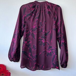 Silk blouse Long sleeves Front half button closure V-neck Excellent condition Armpit to armpit 18” Length 25”
