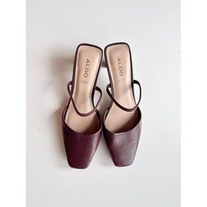 ALDO Afean Dark Brown Burgundy Leather Square Toe Slip On Mules Slides, Size 7