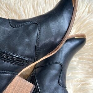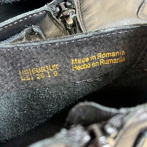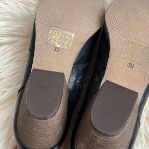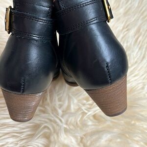 ALDO BLACK LEATHER ANKLE BOOTS WITH GOLD METAL ON THE TIP SIZE 8.5