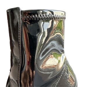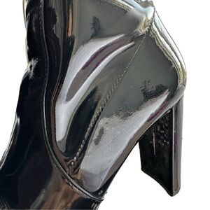 ALDO BLOCK HEEL ANKLE BOOTS WOMENS SZ 7 BLACK PATENT FINISH ZIPPER CLOSURE