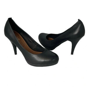 ALDO Black Genuine Leather Platform Pumps Shoes Heels Round Toe 8.5