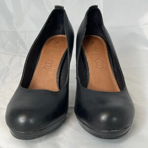 ALDO Black Genuine Leather Platform Pumps Shoes Heels Round Toe 8.5