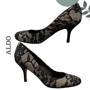 ALDO Black Lace Overlay Pumps Heels - Size 6 US / 36 EU