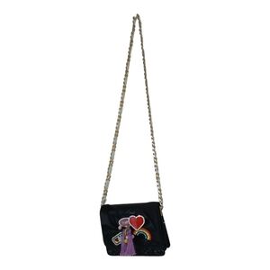 ALDO black and red glitter Tricase embellished sling crossbody bag with rainbow detail.