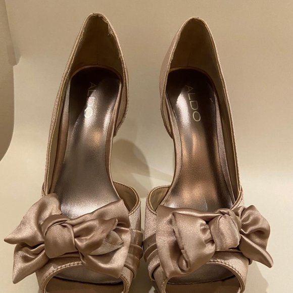 ALDO CHAMPAGNE/GOLD PINK HIGH HEELS CUTE EVENING with ribbon tie