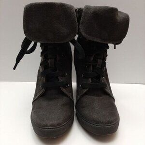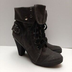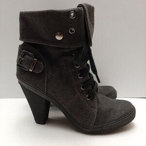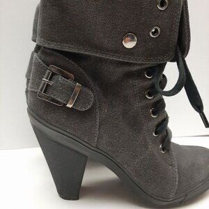 ALDO Canvas Lace-Up High Heel Fold-Over Ankle Boots Sz 8 - 8.5