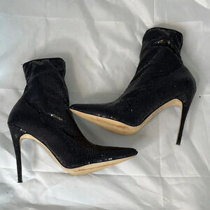 ALDO Cirelle Sequinned Sock Boots Black Stilettos Heels Pointed Toe Size 8.5