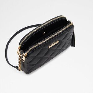 Classic lines and quilted detailing make this crossbody captivating yet understated. Keep this one close, your wardrobe will thank you! Features three interior compartments and key fob accent.