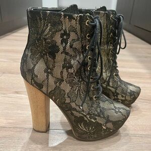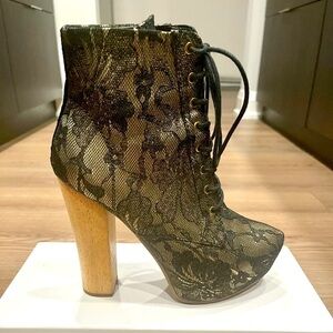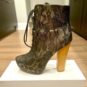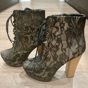 ALDO Gold & Black Embroidered Lace Boots (RARE)