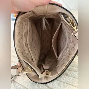 This elegant cream and pink handbag is perfect for any occasion. Its stylish design and versatile colors make it a must-have accessory.