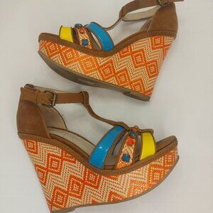 ALDO Multi Color Platform Wedge Sandals Women's Size US 6.5/ EUR 37