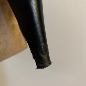ALDO Black, thick strap, platform heel sandals with ankle buckle ("Dison" model) in good but used condition. Leather upper, synthetic sole. Heel is 4.5" tall, and toe platform is about 0.5". Outer shoe is in good condition. The heels have some damage (see photos--on one, the leather is scrunched, the other has a few minor dents). The soles/bottoms of the shoes are worn from normal wear. The toes of the insole are a bit curled up (see photos). Overall, the wear/scuffs are not noticeable when wearing the shoe (except for maybe the back of the heels).