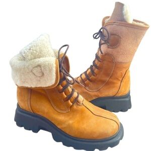 ALDO Tan Shearling Wool Lace-Up Boots | Size 39 | Made in Italy