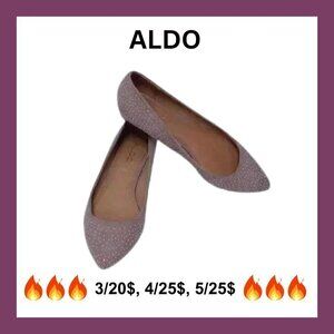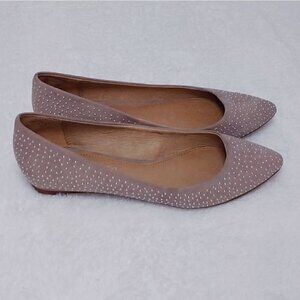 ALDO Taupe, all studded, leather lining and foot bed, balance man made, pointed toe flats, size 6. Great pre-oved condition, some natural signs of wear and one studd missing but besides that they are in pristine condition!