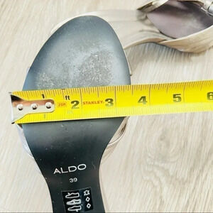 ALDO GOLD LEATHER SANDALS HEELS BOW IN FRONT SIZE 9