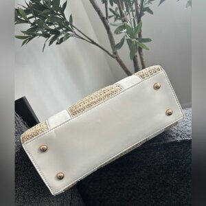 Cute ALDO women's handbag. Featuring a sophisticated white and tan design, this bag is perfect for summer or a beach vacation.