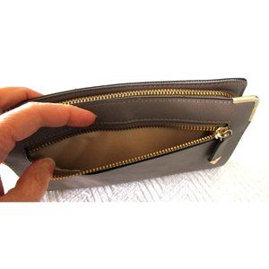 * ALDO Women's Grey/Beige PU Leather & Gold Hardware Zip Around Wallet