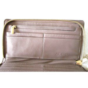 ALDO Women's Wallet Grey/Beige PU Leather with Gold Hardware - Zip Around Wallet