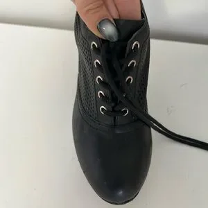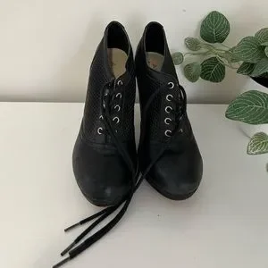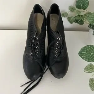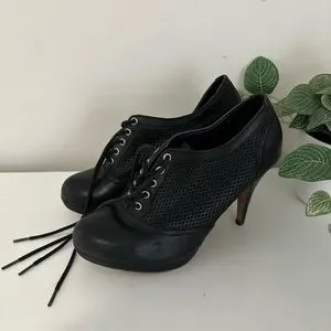 ALDO - black lace up heels with mesh side design detail. 3” heel height. Good used condition. Size women’s 6.5