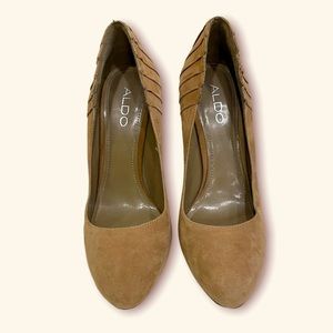 ALDO platform beige suede stiletto pumps size 38 (fits like a 7-7.5)