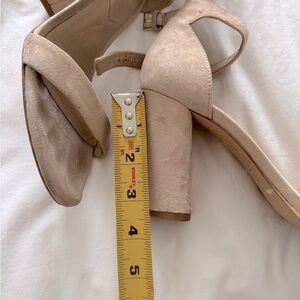Sexy and sophisticated strappy blush heels from Aldo. Dress these babies up or down! Suede style material, a few scratches on the heel itself but not really noticeable. The block style heel makes them easy to walk in. I loved wearing them with a cute summer dress or shorts and button up for a more professional style look.