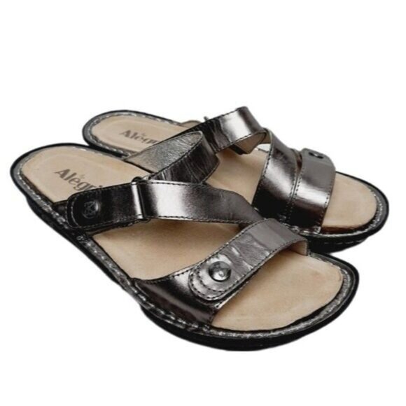 ALEGRIA Comfort Slip-on Sandal Slides Silver Sz 6
