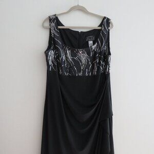 ALEX EVENINGS Grey Silver Sequin Ruched Maxi Evening Dress Gown - Size US 16W