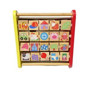 Alex Jr. Busy Tot is a gorgeous wooden activity toy bursting with moving and spinning parts that beckon to little fingers. Holds National Parenting Center Seal of Approval! One side features reversible, flip-flop tiles, the other movable characters mounted on maze-like tracks. On one end, the large mirror promotes self-discovery, while on the other, expressive animal faces help kids recognize emotions.